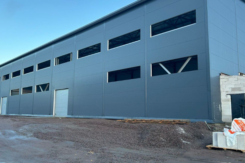 Высота стен 10м, в коньке 12м. сендвич 120мм комби.